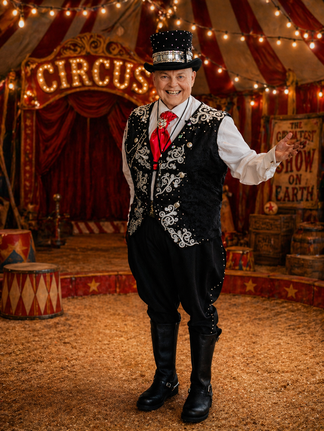 As a Ringmaster and Master of Ceremonies, he delivers confident stage presence, sharp audience awareness, and seamless flow—keeping programs engaging, organized, and elevated from start to finish.